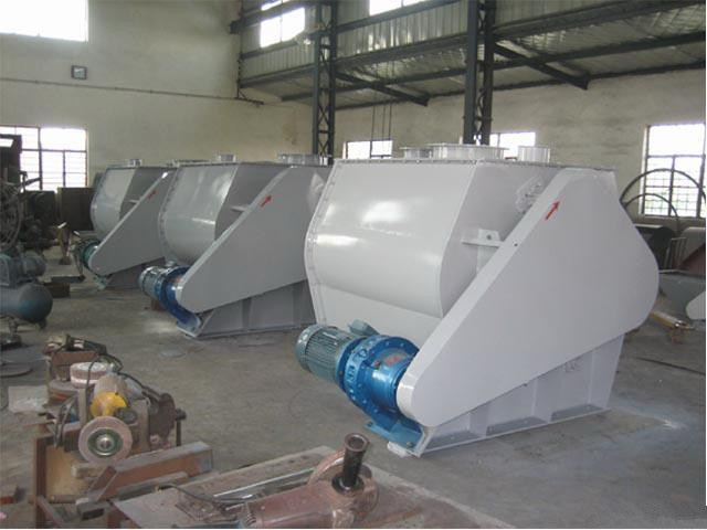 無重力混合機臥式筒體內裝有雙軸旋轉反向的槳葉,槳葉成一定角度將物料沿軸向、徑向循環翻攪,使物料迅速混合均勻;為降低設備易損件的更換成本,槳葉葉片可做成兩片式,在葉片基座上墊一塊可移動小葉片,可直接更換磨損的小葉片,經濟快捷;出料形式一般為氣動(手動)翻板閥,圓弧閥門緊密嵌入筒內,與筒內壁齊平,無物料堆積和混合死角現象;標準型有大開門小開門之分,大開門開口到筒邊,放料干凈快捷,殘留少。無重力混合機性能特點減速機帶動軸的旋轉速度與槳葉的結構會使物料重力減弱,隨著重力的缺乏,各物料存在顆粒大小、比重懸殊的差異在混合過程中被忽略。激烈的攪拌運動縮短了一次混合的時間,更快速、更效率。 即使物料有比重、粒徑的差異,在交錯布置的攪拌葉片快速劇烈的翻騰拋灑下,也能達到很好的混合效果。