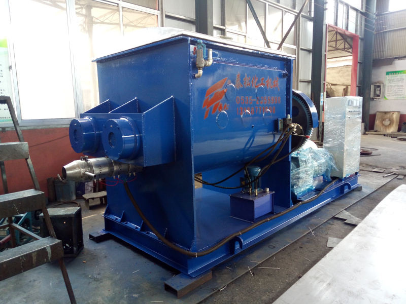 螺桿擠出捏合機由不銹鋼材質制成,配有快慢攪拌槳減速機2臺,螺桿出料,設備外有外型腔。